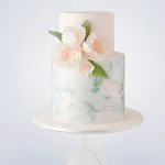 Бирюзово-белый торт с цветами для девочки