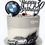 На белоснежной поверхности торта застыл стремительный силуэт роскошного автомобиля BMW 7 серии. Фотопечать передаёт каждый изгиб кузова, создавая эффект динамики и скорости. Контраст чёрного авто на фоне безупречного белого фона рождает ощущение элегантности и стиля. Этот торт словно застывший кадр из мира премиальных автомобилей, где каждая линия говорит о совершенстве.