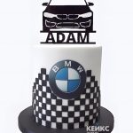 Торт БМВ с черно-белым оформлением на фасаде