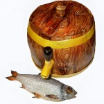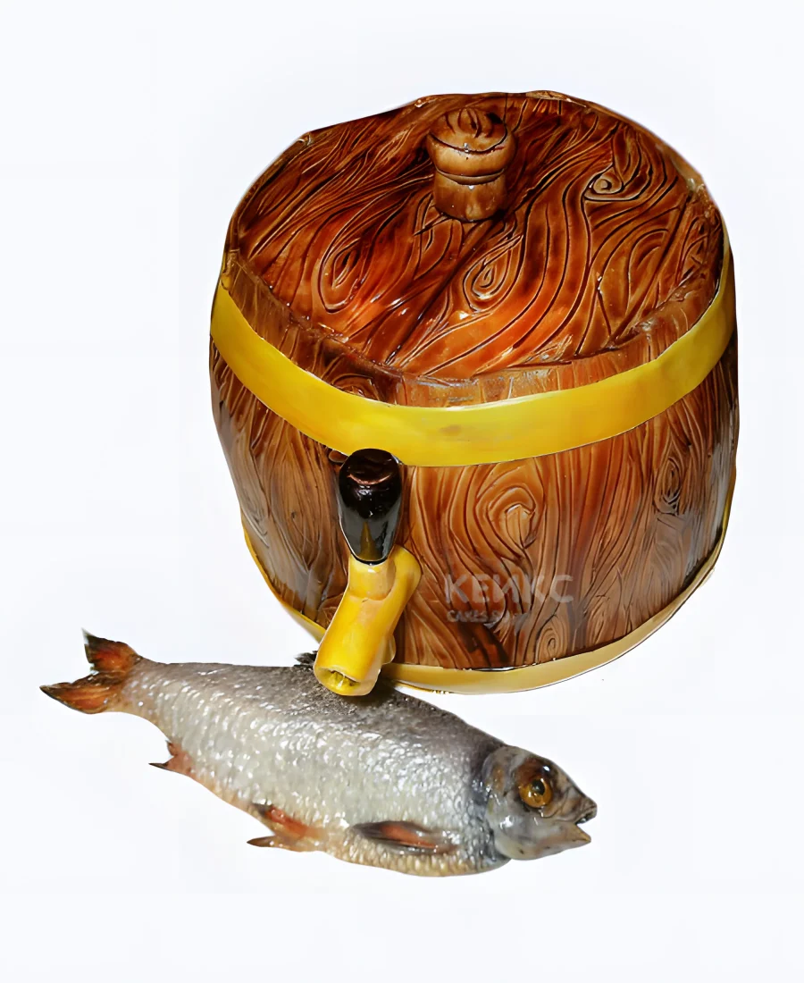 Торт в виде бочки с пивом и рыбой