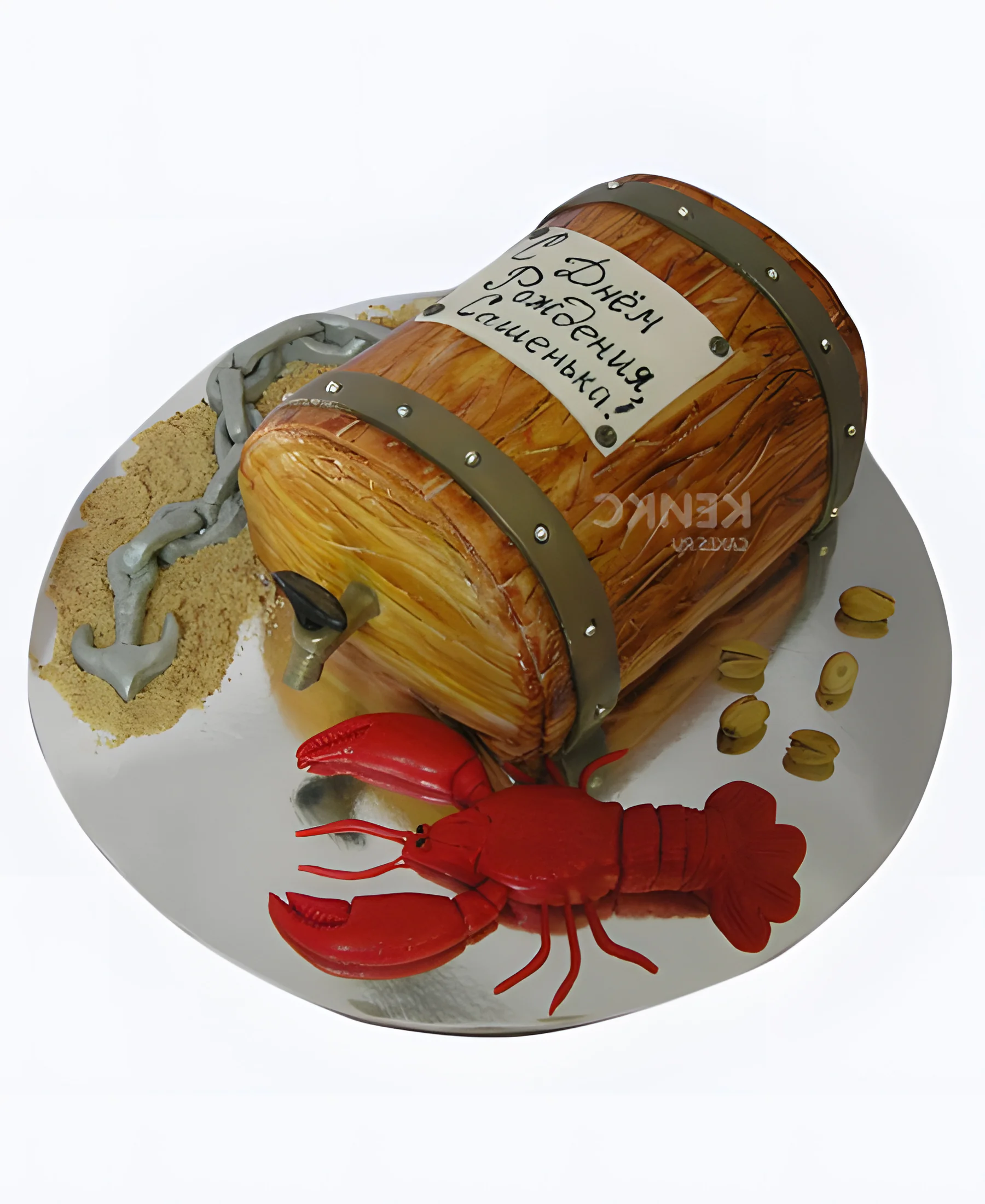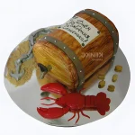 Торт бочка с пивом и с красными раком для Саши