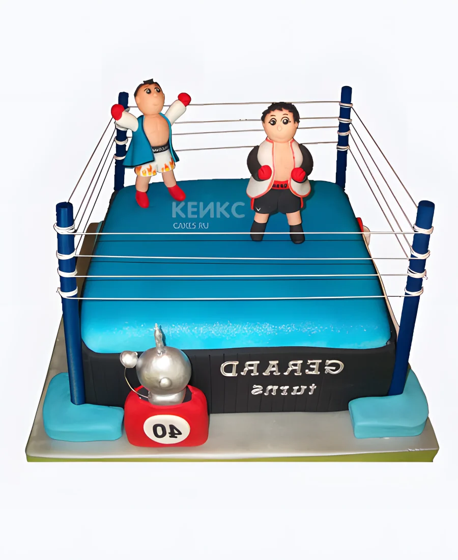 Прикольный торт боксерский ринг с фигурками из мастики