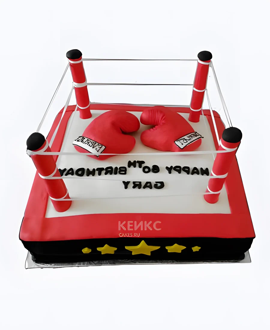 Торт боксерский ринг с красными перчатками