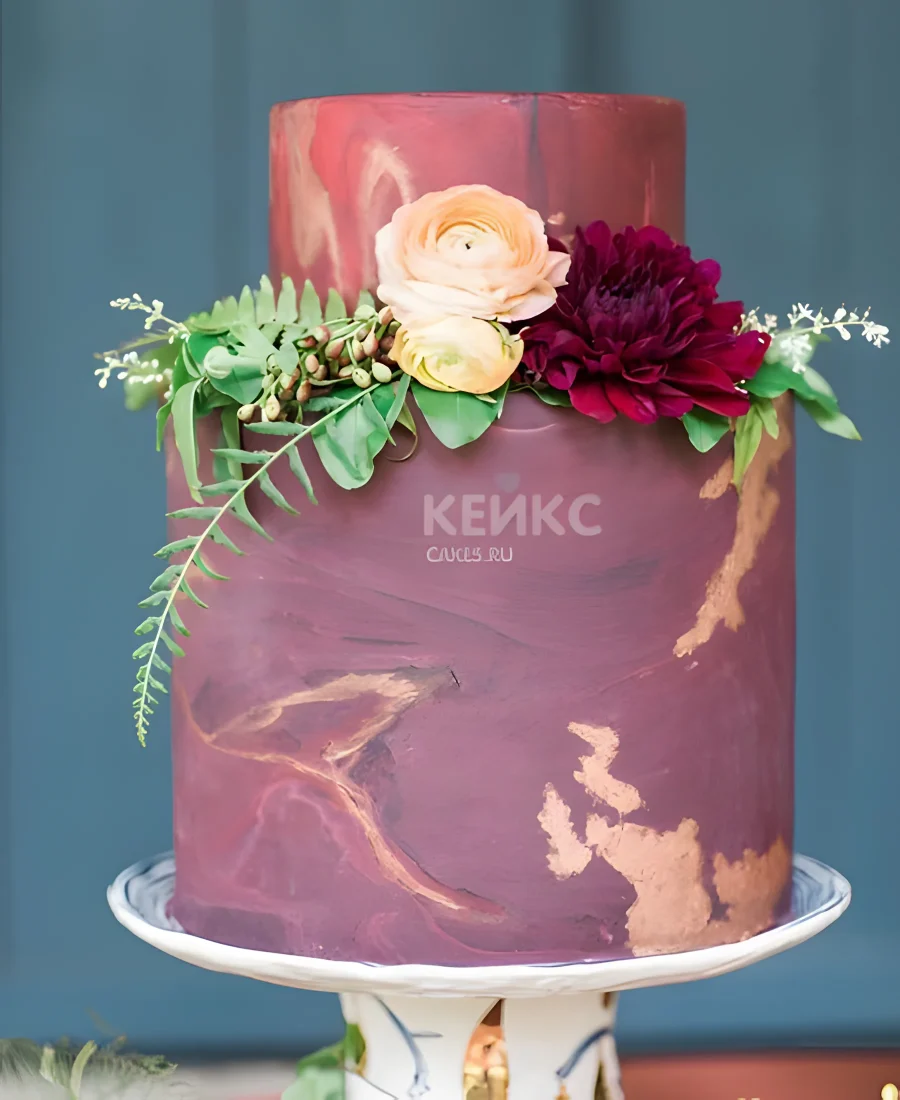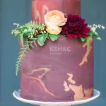 Торт бордовый с живыми цветами