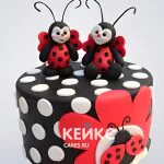 Этот очаровательный торт украшен нежным горошком и милыми божьими коровками, создающими игривое настроение. Белоснежная глазурь с аккуратными темно-розовыми точками придает торту воздушность и легкость. Две божьи коровки, выполненные из мастики, сидят на поверхности, словно живые. Простой, но стильный дизайн делает этот торт идеальным для детского праздника или романтического свидания.