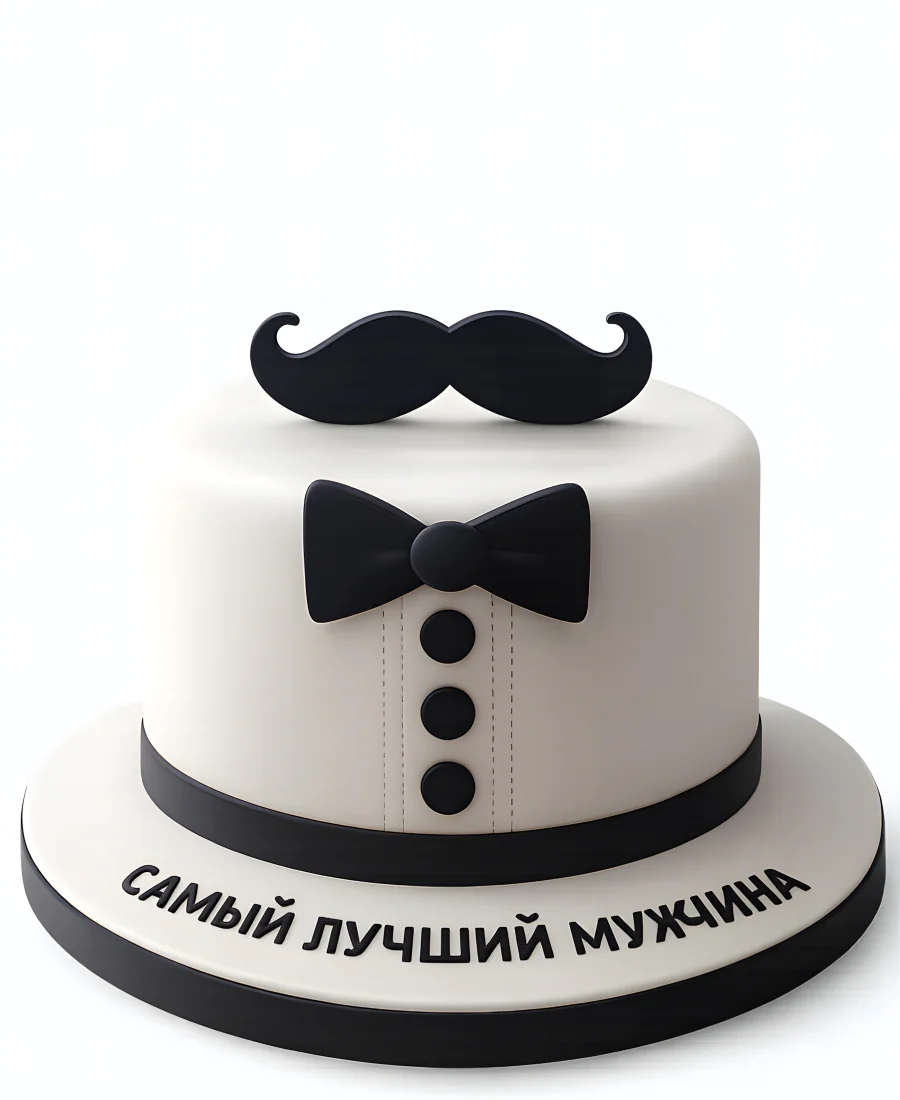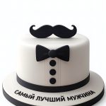 Торт белого цвета с усами и бабочкой
