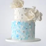 Бело-голубой торт букет с белыми цветами