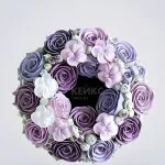 Торт букет с белыми, розовыми, фиолетовыми цветами