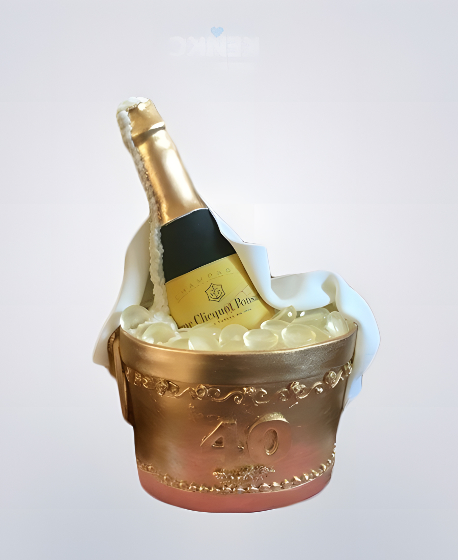 Торт в виде бутылки шампанского в медном ведерке со льдом