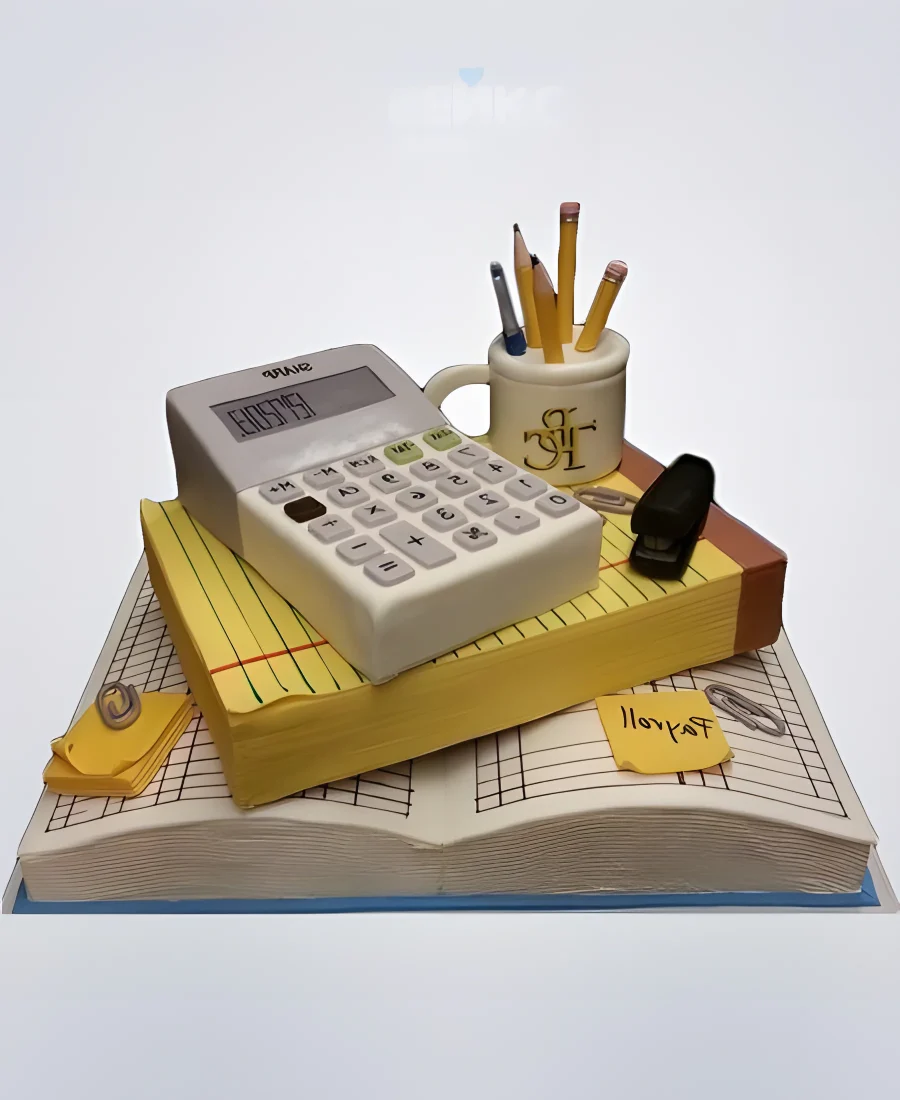 Торт бухгалтеру с журналом и калькулятором