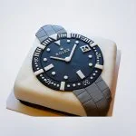 Этот элегантный квадратный торт вдохновлен классическими наручными часами. Гладкая матовая мастика глубокого синего цвета создает эффект дорогого циферблата. Тонкие золотые стрелки и римские цифры выглядят почти как настоящие, добавляя торту благородный шарм. Минималистичный дизайн с аккуратными линиями передает атмосферу роскоши и точности. Торт словно застыл во времени, превратившись в съедобное произведение искусства.