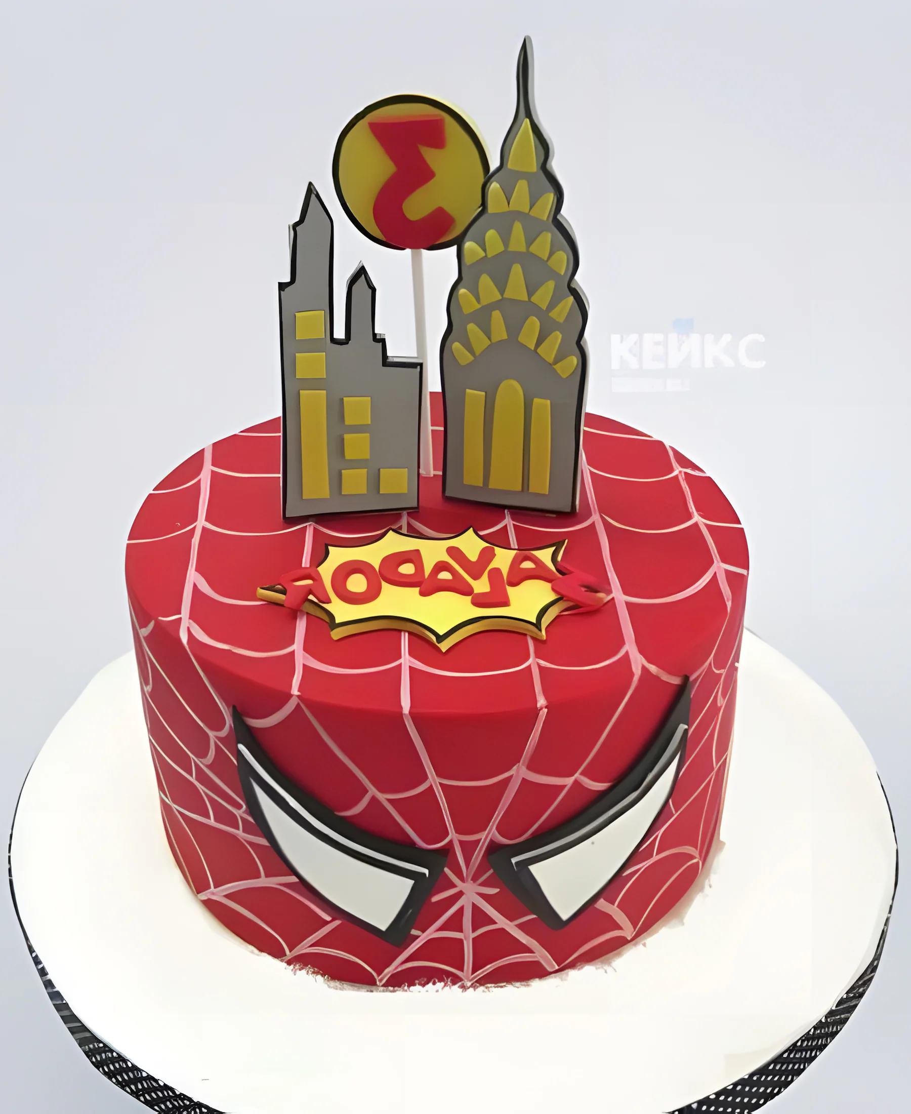 Красный торт человек паук с надписью