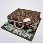 Торт чемодан с деньгами с логотипом LV