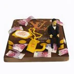Торт чемодан с деньгами и человеческой фигуркой из мастики