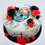 Торт череп с красно черными розами