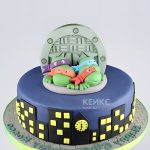 Фиолетовый торт Черепашки ниндзя с люком и ночным городом