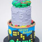 Двухъярусный торт Черепашки ниндзя с люком и пиццей