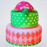 Яркий торт с бусинками и фигуркой розовой черепахи