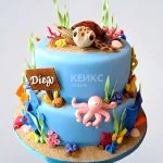 Голубой торт с фигурками морских жителей