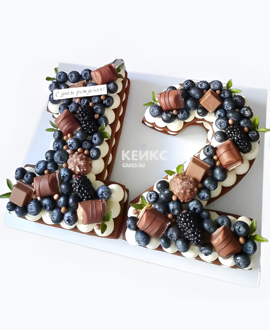 Торт цифра 12 с голубикой и шоколадом