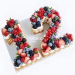Торт в виде объемной цифры 12 выглядит очень празднично и ярко. Белоснежные открытые коржи создают эффект воздушности, а сочные ягоды малины и черники добавляют контрастные акценты. Композиция напоминает зимнюю сказку — будто цифры припорошены сладким снегом, а ягоды горят как новогодние огоньки. Такой торт сразу создает ощущение волшебства и радостного ожидания праздника.