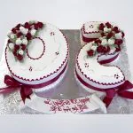 Торт цифра в бело-красном цвете с бантиками и цветами