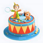 Мастичный торт цирк с клоуном и львом