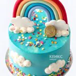 Торт цвета аквамарин с радугой и облаками для девочки