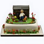 Прямоугольный торт дача с цветами из мастики