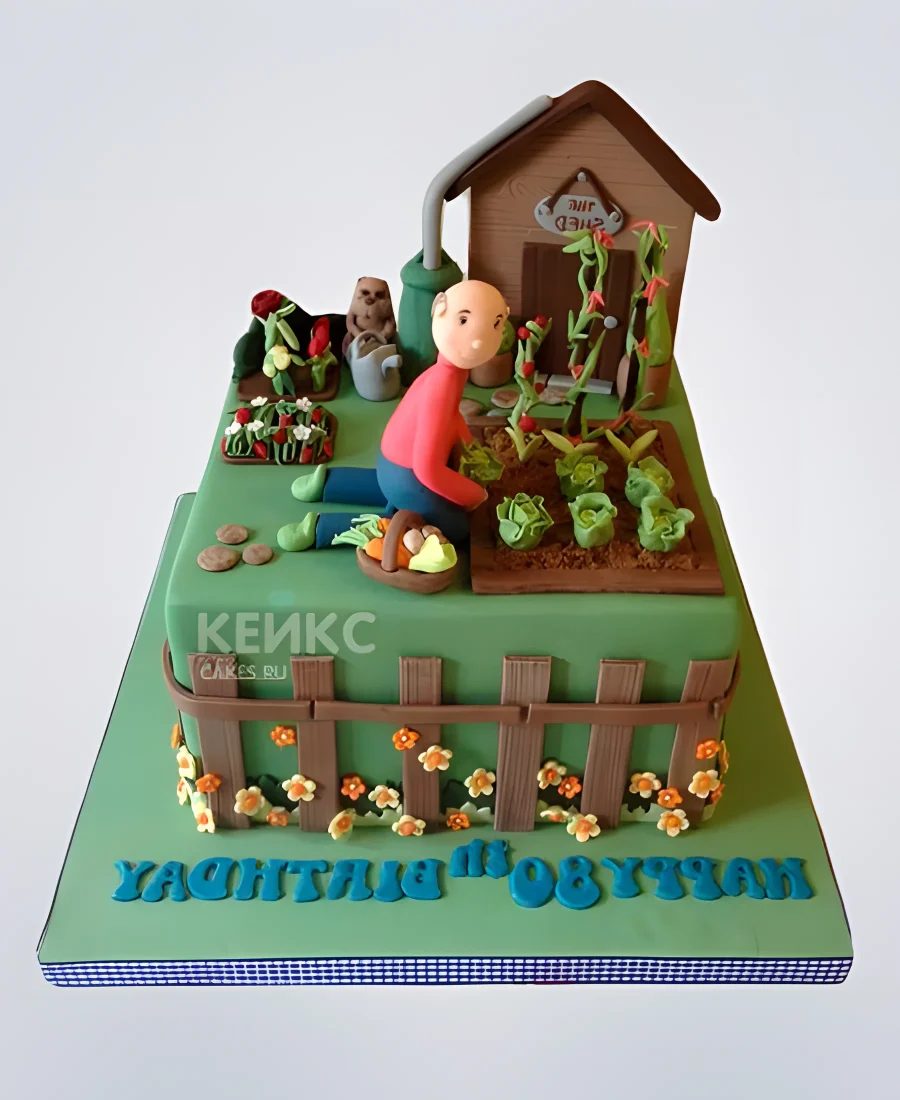 Торт в виде огорода с домиком