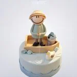 Торт с фигуркой рыбака в нежно-голубых тонах