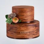 Двухъярусный круглый торт в деревенском стиле выполнен в нежной пастельной гамме. Поверхность мастики украшена изящными цветочными композициями ручной работы. Лаконичный декор и мягкие цветовые переходы создают ощущение уютной простоты. Минималистичный подход подчеркивает природную эстетику и гармонию форм.