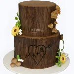 Двухъярусный торт дерево из мастики с цветами и грибами