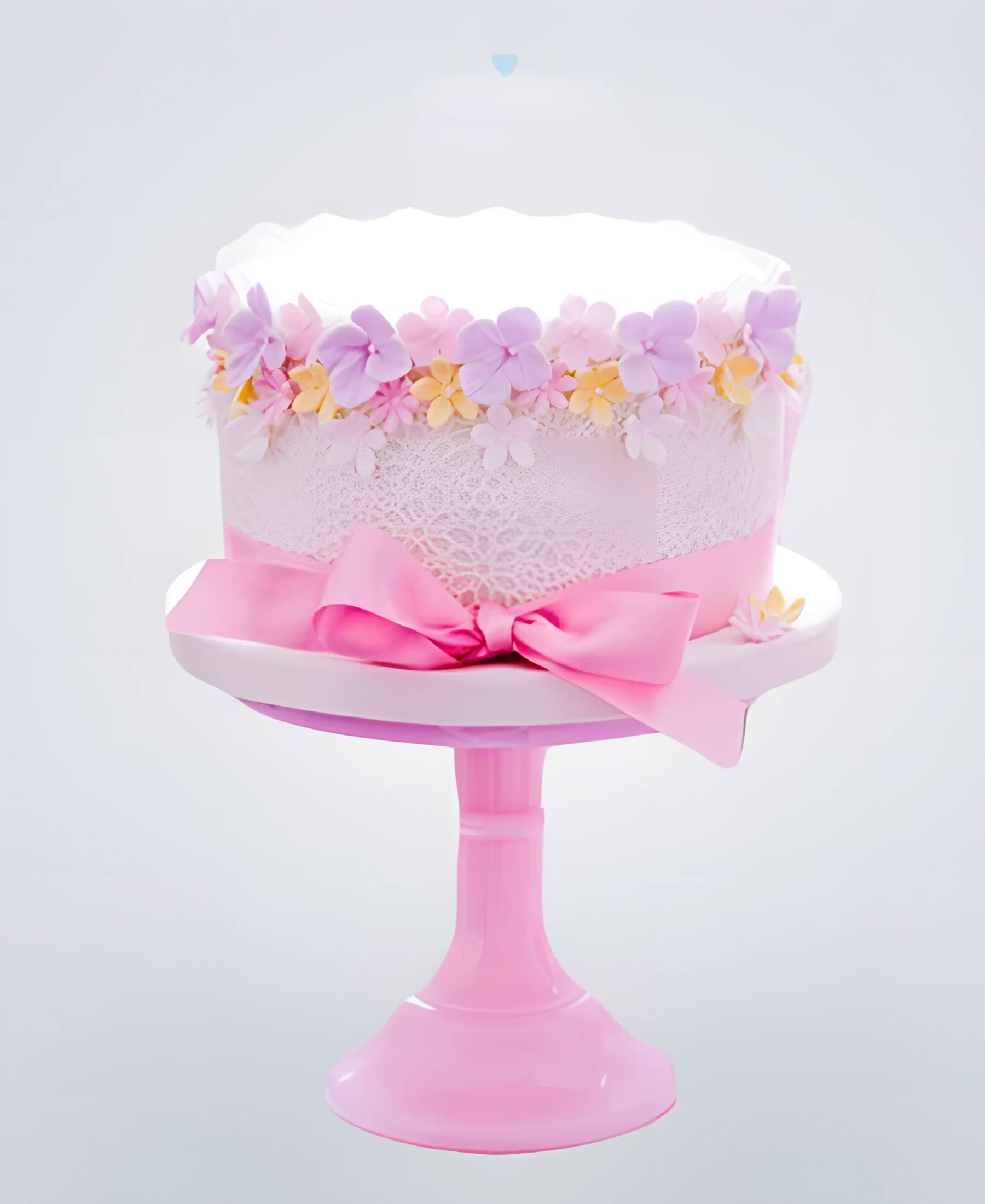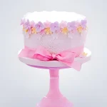 Торт с цветами и розовым бантиком