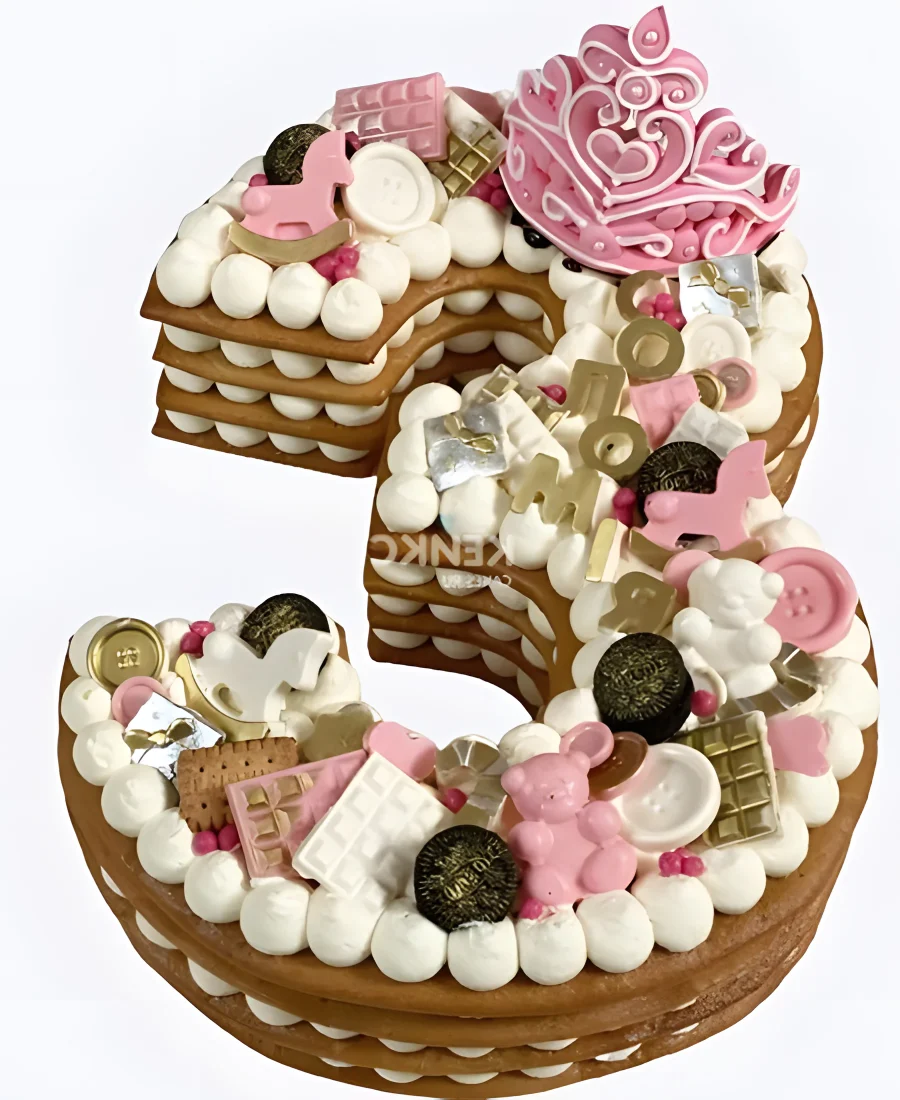 Торт девочке на 3 года в виде цифры со сладостями
