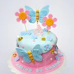 Детский розово-голубой торт с бабочками для девочки 6 лет
