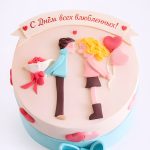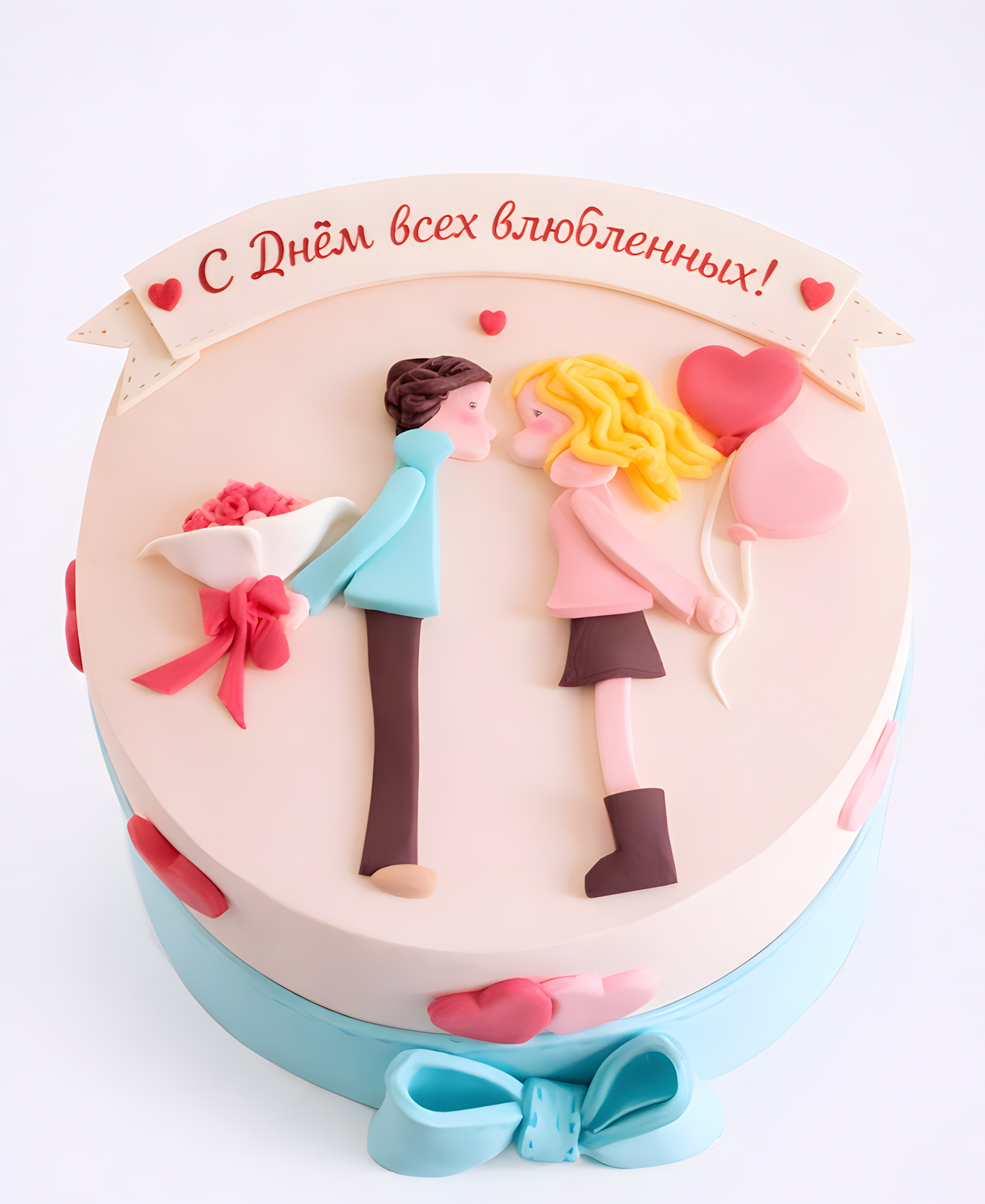 Персиковый торт с бантом и влюбленными