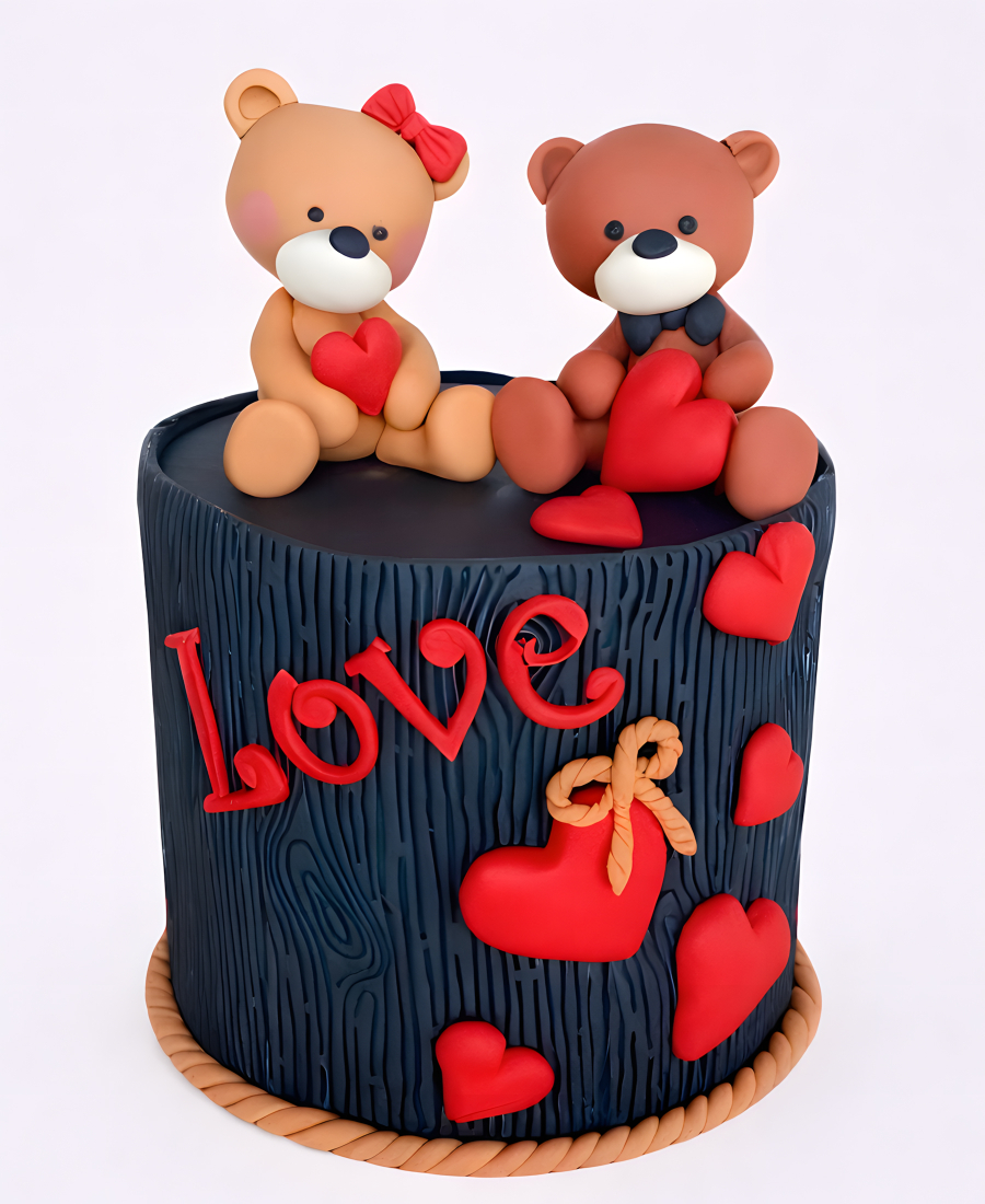 Черный торт с влюбленными мишками