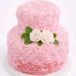Розовый торт с кремовыми розами и бусинами