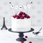 Белый торт со свежей малиной и гирляндой