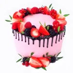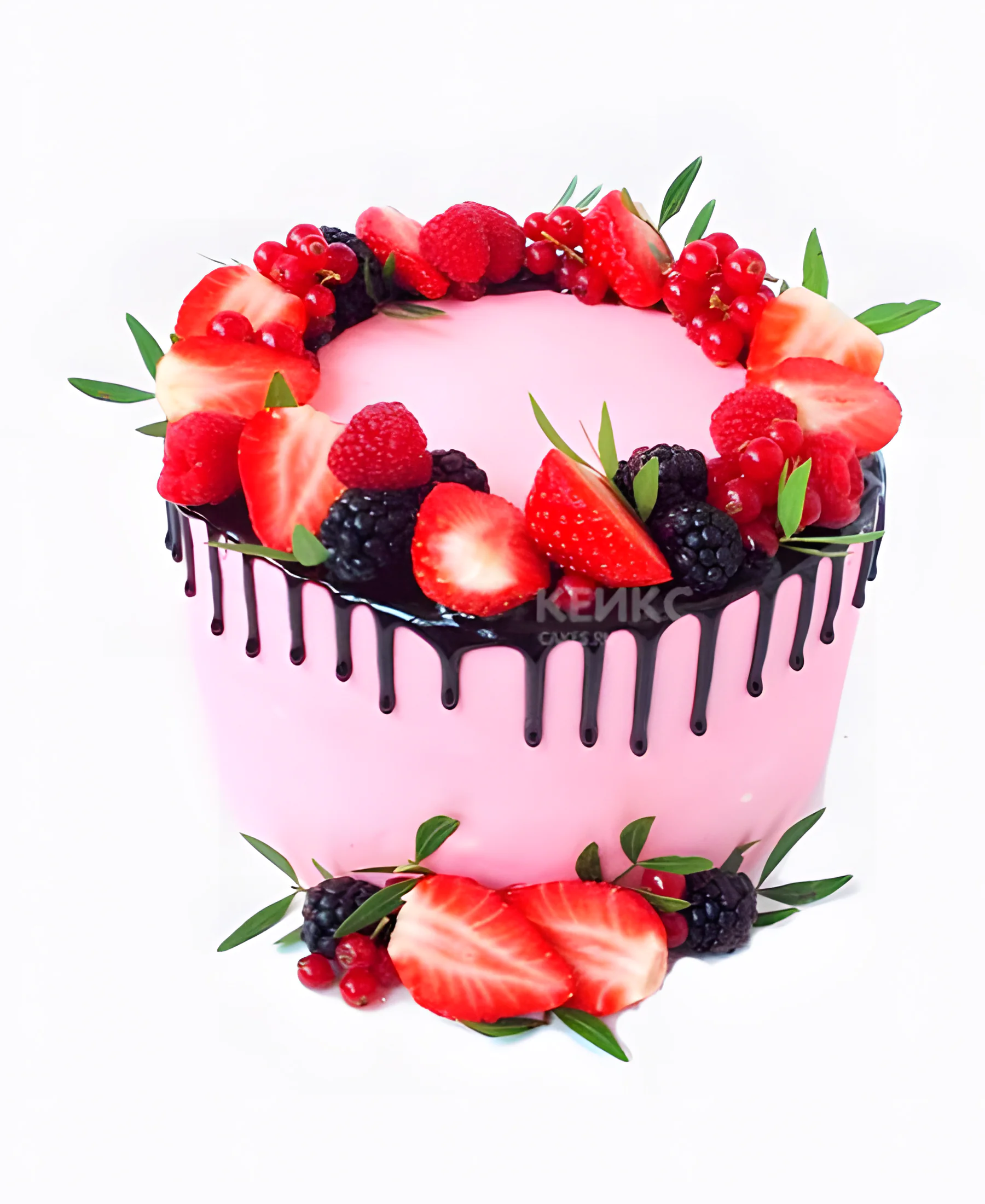 Красивый розовый торт с клубникой и ягодами