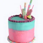 Розово-голубой торт со сладкими украшениями