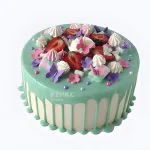 Нежный торт с голубой глазурью и фруктами