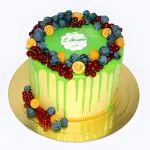 Зелёный торт с глазурью и ягодами на 16-летие девушке