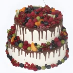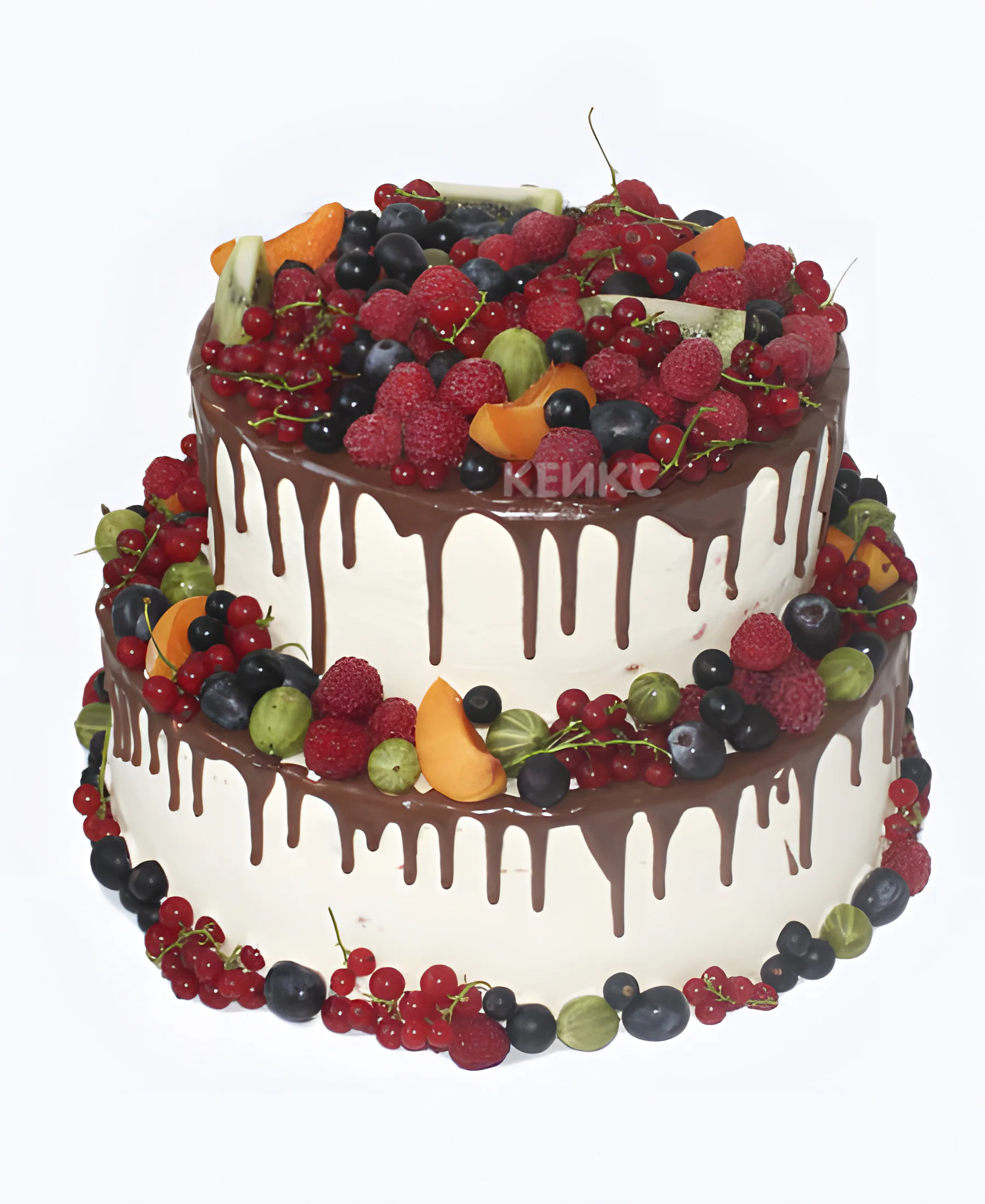 Торт двухэтажный с шоколадной глазурью и ягодами