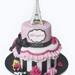 Торт двухэтажный с бантом и фигуркой Эйфелевой башни