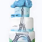 Торт с эйфелевой башней в голубых тонах