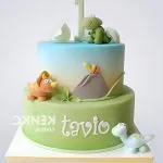 Этот очаровательный двухъярусный круглый торт украшен яркой мастикой и милыми фигурками динозавров. Идеальный вариант для празднования первого дня рождения! Красочный дизайн и забавные детали делают торт настоящим центром внимания на детском празднике.