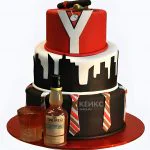 Торт в стиле города с бутылкой коньяка