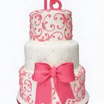 Трехъярусный торт с розовыми вензелями